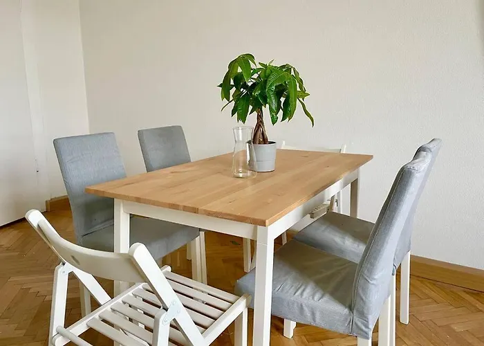 For your convenience and comfort, the apartment is equipped with tea and coffee making facilities, a fridge, and oven. The nearest bus stop to 55M2 Stylish Apartment With Netflix - 15 Min To Center is Evangelischer Friedhof, which is a mere 100 feet away.